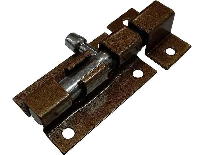 Один из самых примитивных дверных замков, который изначально устанавливался на двустворчатых дверях с целью закрепления створки. Сейчас же мы можем видеть шпингалет преимущественно в ванной комнате и туалете. Принцип работы очень простой и заключается в выдвижении стержня, который поворачивается и фиксируется в специально сделанном отверстии ответной планки.