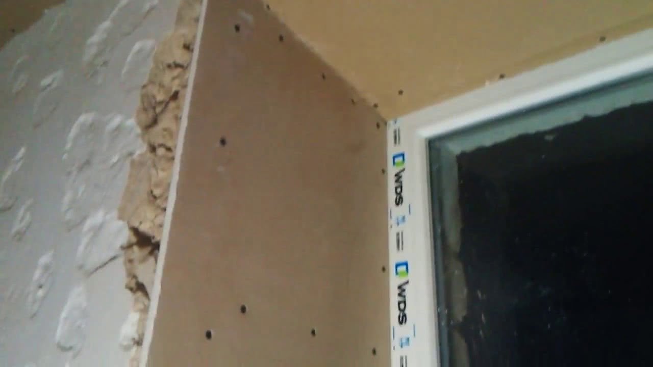 - пазы заделываются шпатлевкой, откосы зашиваются пластиковыми панелями.
