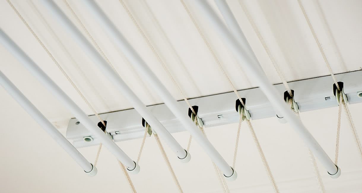 Нередко в выдвижных потолочных сушилках вместо веревок доступны тонкие трубы из пластика или другого материала.