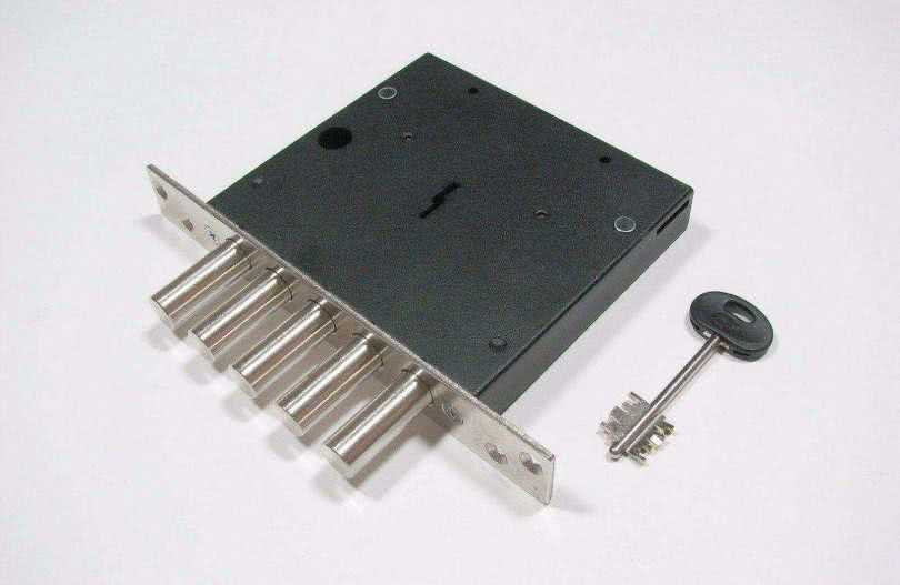 Ригельные конструкции по эксплуатационным показателям считаются самыми надежными. Такая характеристика устройства основана на простоте конструкции замка и способу его открытия. Единственный недостаток – неудовлетворительная степень устойчивости к взлому.