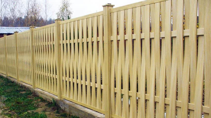 - Можно согнуть доски таким образом, что получится австрийская плетенка – двусторонний забор с минимальными зазорами.