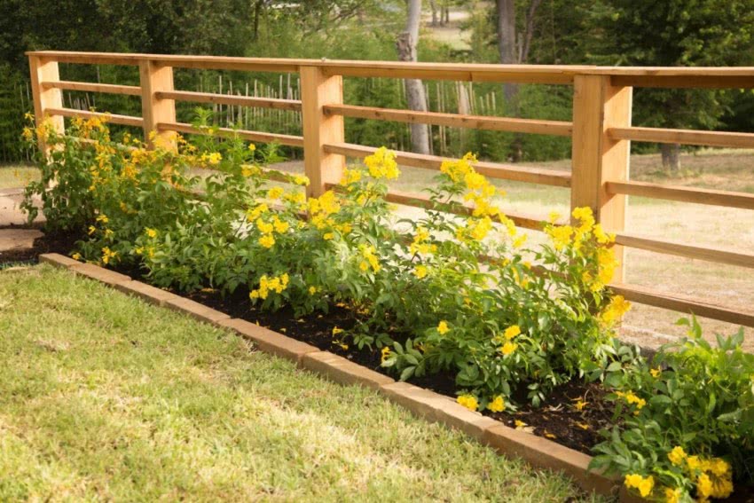 - Вместо штакетин использовать горбыль. Такой материал оформит забор в деревенском стиле под старину. А оцилиндрованное бревно, наоборот, смотрится очень современно.