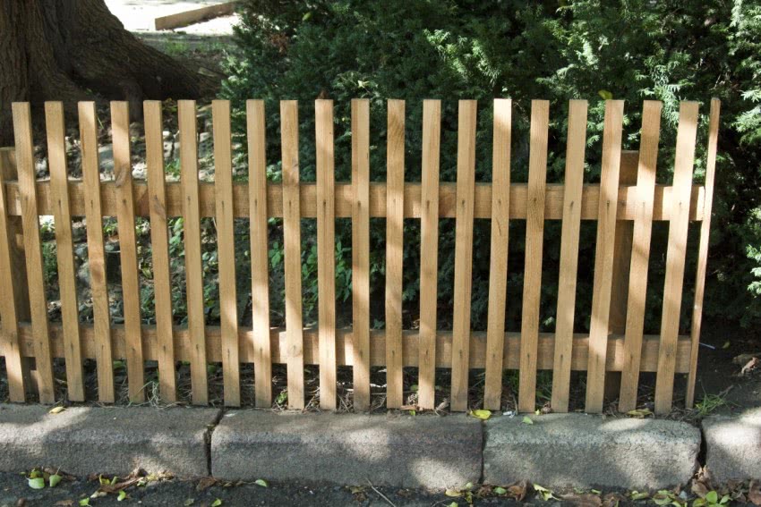 У частников самым популярным материалом для разборных оград считается деревянная доска – неказистая на вид, но прочная. Экономные хозяева используют недорогой горбыль, приберегая обрезную доску для более серьезных конструкций.