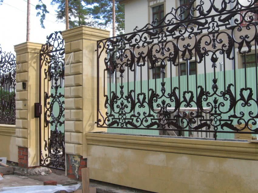 Для роскошных построек в вычурных стилистических направлениях рекомендуется подбирать не менее роскошные ограждения. Для этого подойдут дорогие кованые конструкции, имеющие интересные декоративные элементы и детали, покрытые позолотой. Если же вы предпочитаете загадочный готический стиль, то вам идеально подойдет черный металлический забор с элементами ковки и остроконечными пиками на верхней части. Также подобные конструкции могут быть дополнены рельефными рисунками и орнаментами.