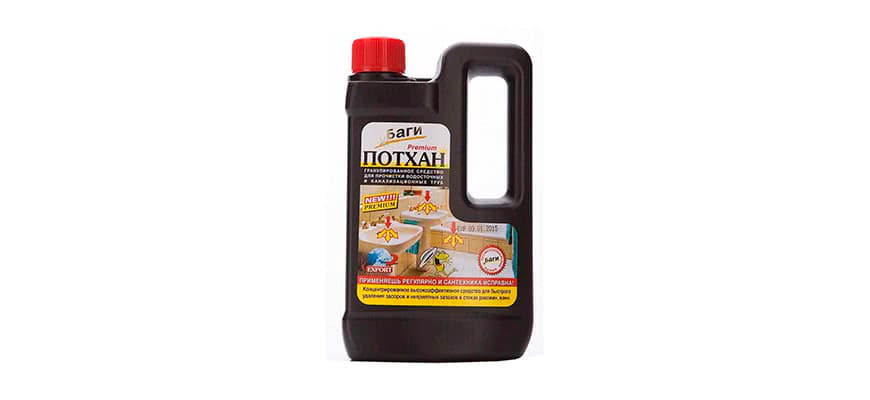 Недорогой отечественный препарат используют для устранения засоров в канализации. Действующими веществами являются гидроксиды калия и натрия. Это агрессивные щелочи, которые эффективно растворяют органические соединения. Время воздействия — 2-3 часа. В сложных случаях его можно увеличить до 10-12 часов. Работать с препаратом нужно только в перчатках. Содержащаяся в «Кроте» щелочь может нанести сильные химические ожоги при попадании на кожу.