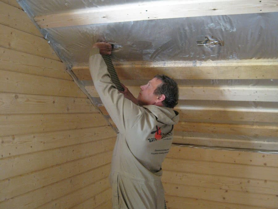 Утепление фронтона мансарды: сухая задувка эковаты под пароизоляционную мембрану