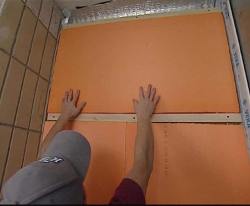 Первые два способа укладки утеплителя хорошо подходят под штукатурку или шпаклёвку стен, потолка. На профили или под них проводится утепление пеноплексом лоджии, когда внутренняя отделка будет из гипсокартона, панелей ПВХ, МДФ, деревянной вагонки. На пол так же рекомендуется не клеить плиты, а укладывать в каркас из бруса.