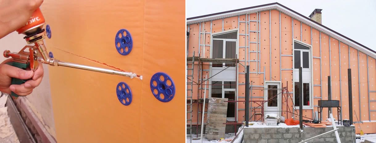 Метод крепления при выборе «влажного фасада» примерно тот же, что и при работе с пенопластом, а именно: