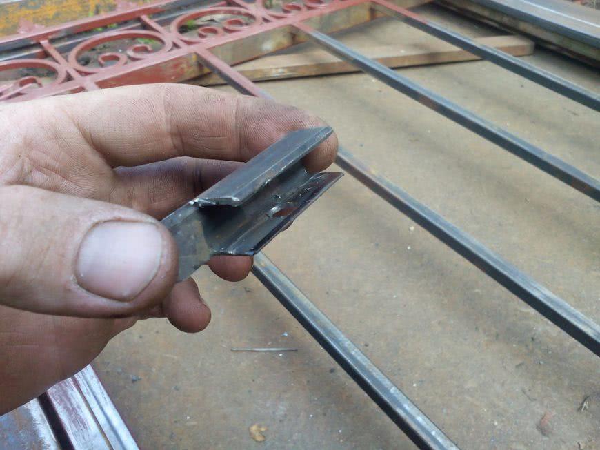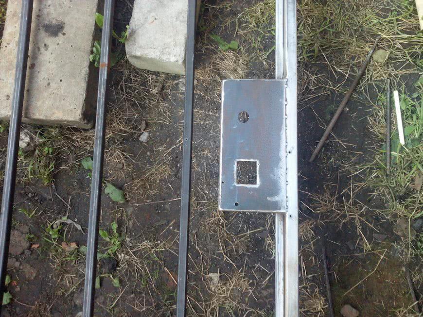 Элемент с пазом нужно будет соединить с установочной частью калитки. Не забывайте, что все швы, которые появляются после использования сварки, нужно обязательно зачищать.