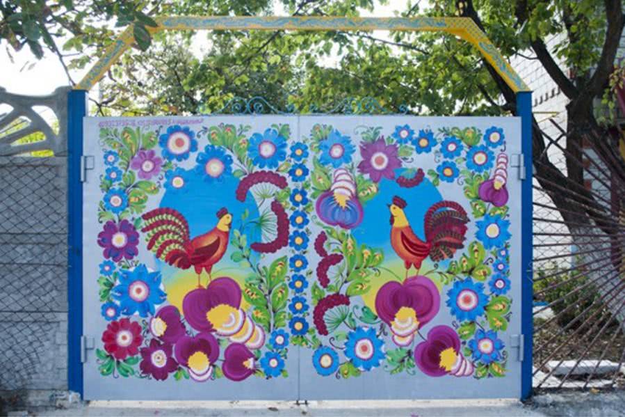 Чтобы украсить ворота на даче, отдайте предпочтение не слишком вызывающим композициям. Так вы избежите косых взглядов соседей. Подойдут, к примеру, животные, пейзажи, персонажи мультфильмов и абстрактные орнаменты.