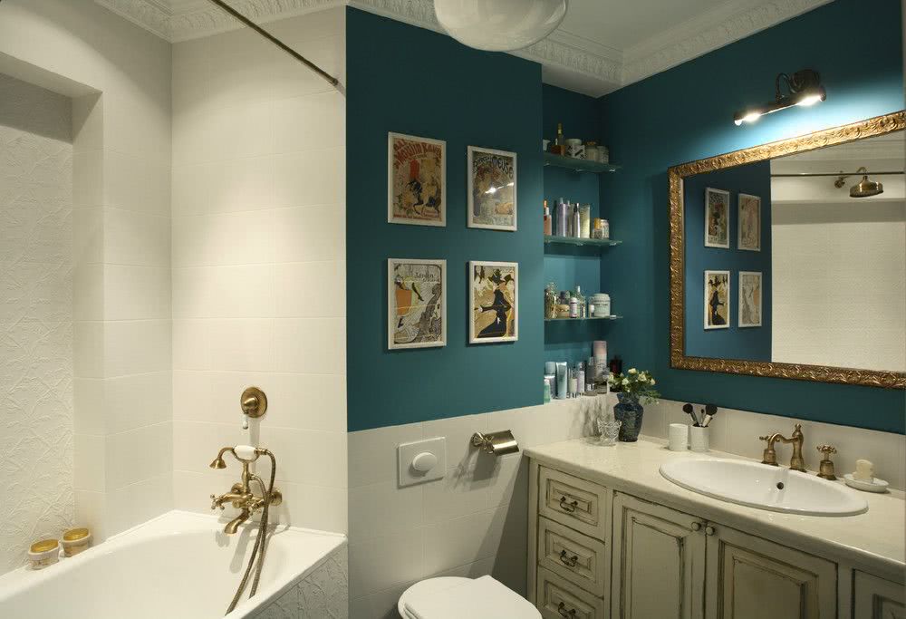 На фото с различными идеями для дизайна ванной под покраску можно найти глянцевые или матовые покрытия. Выбор во многом зависит от стиля интерьера или от размеров комнаты.
