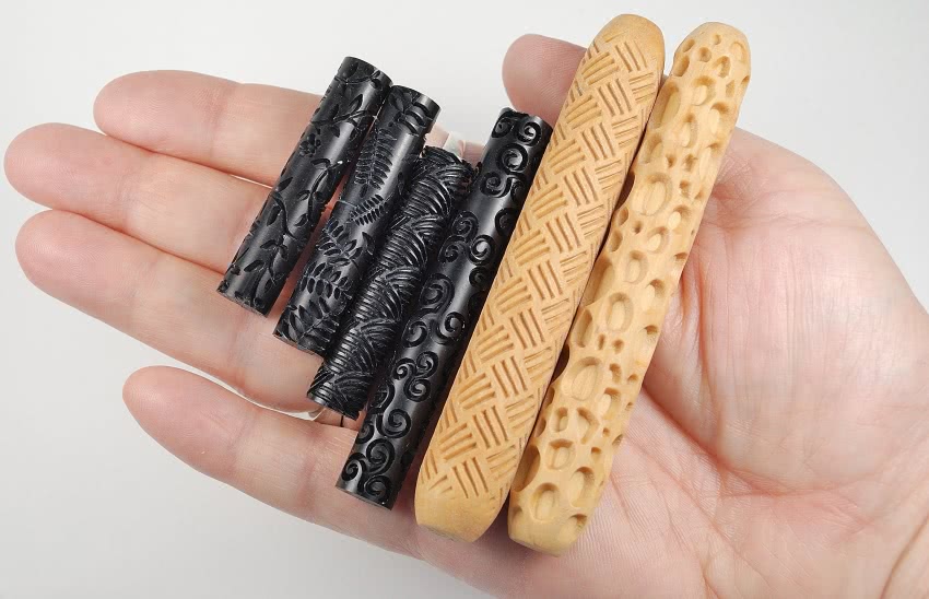 В первом случае его применяют как инструмент, чтобы штамповать различные рисунки: от самых простых до сложных фантазийных, наподобие того, как при наклейке обоев полотна стыкуют друг с другом для продолжения узора. Валик можно вдавливать с разной силой, получая в результате более или менее выраженный рельеф.