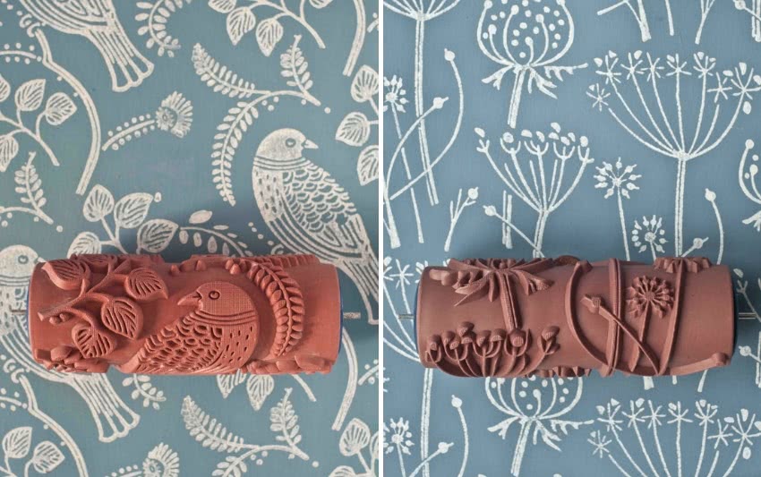 Декоративный резиновый валик может иметь разную фактуру, с помощью которой можно создать интересные рисунки и орнаменты на стене