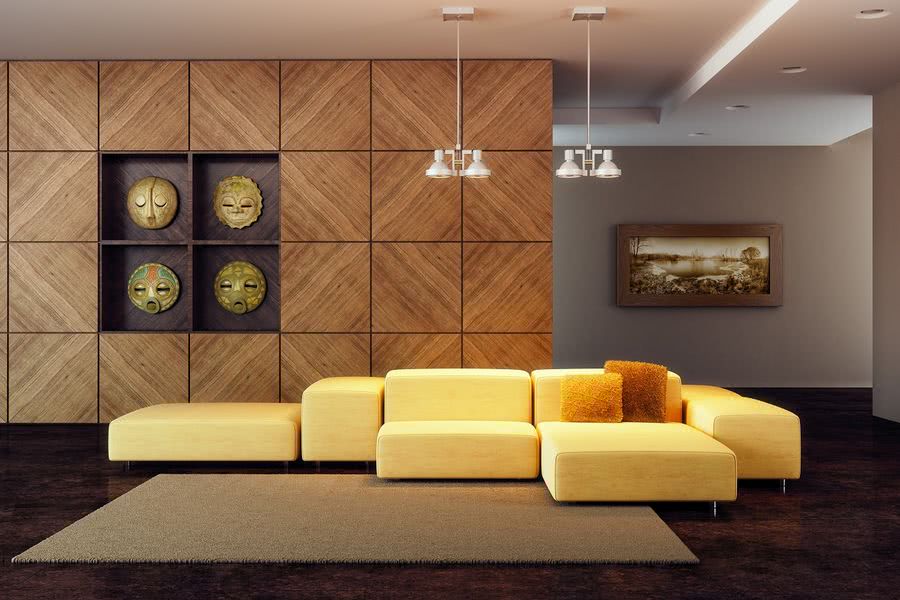 Дерево, как упоминалось ранее, не переносит влагу и потому подходит далеко не для всех помещений. Чаще всего деревянную плитку используют в залах и спальнях.