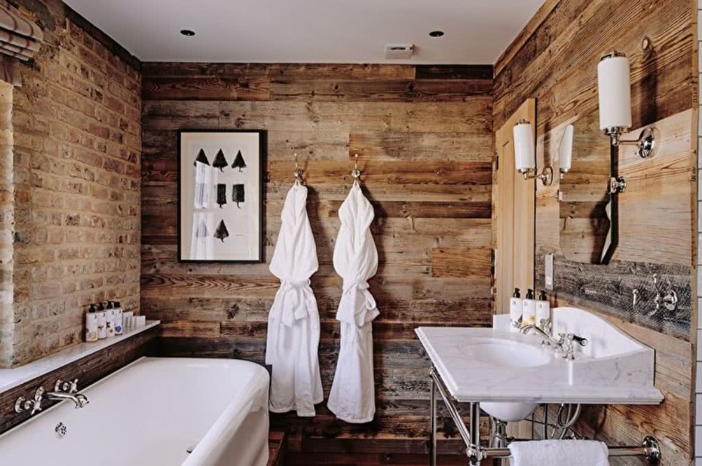 Главными отделочными материалами, использующимися для декорирования стен ванной комнаты в стиле лофт, являются: