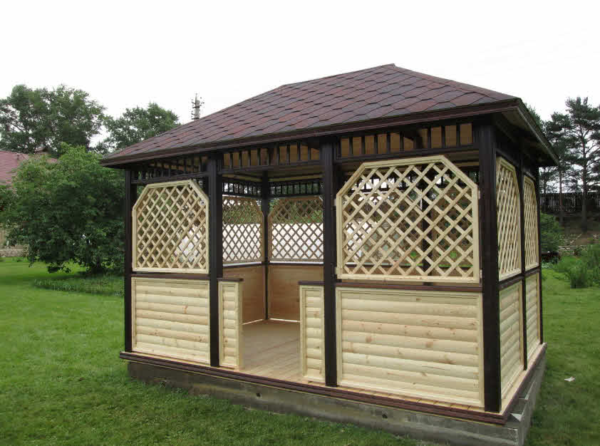 Если возводится беседка своими руками из дерева, то рекомендуется выбирать именно материал из этих трех пород деревьев.