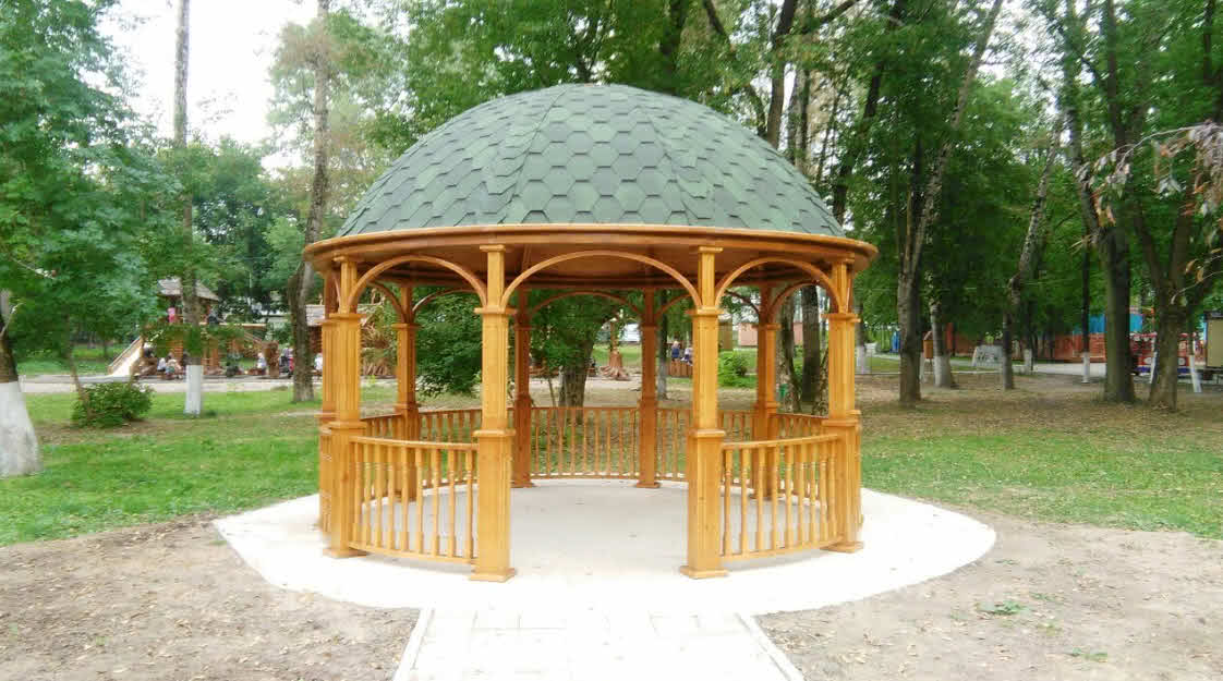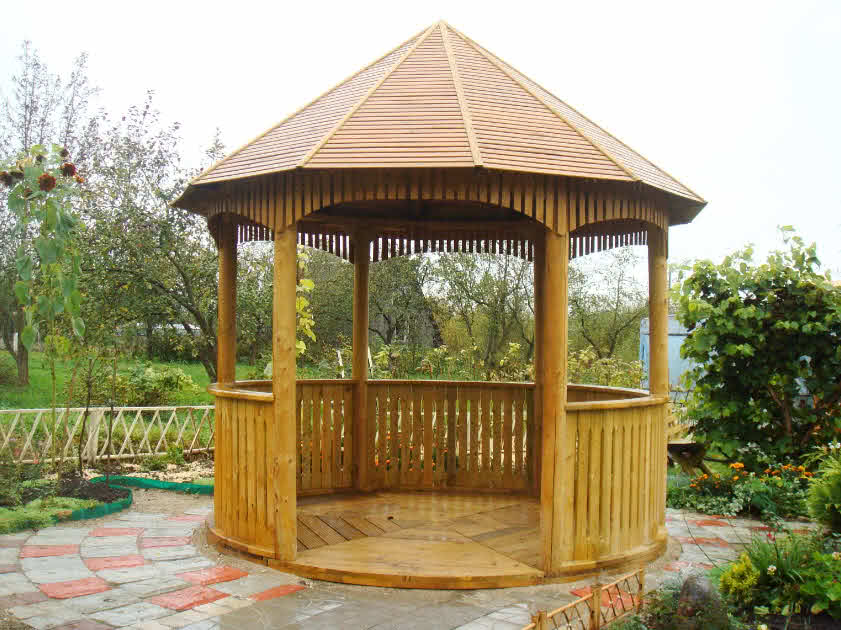 -дерево. Самый популярный материал в деле возведения беседок. Чистый, природный материал сам по себе способный сделать помещение более уютным и теплым;