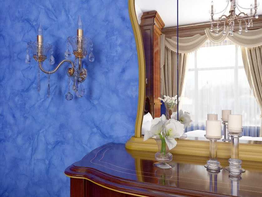 Вдобавок, следует учитывать большой ассортимент фактур, оттенков и разновидностей материала. Опытные мастера создают уникальные изображения с помощью венецианки своими руками на поверхности стен. Если говорить об обоях, то даже они не могут сравниться достоинствами и внешним видом с данным покрытием.