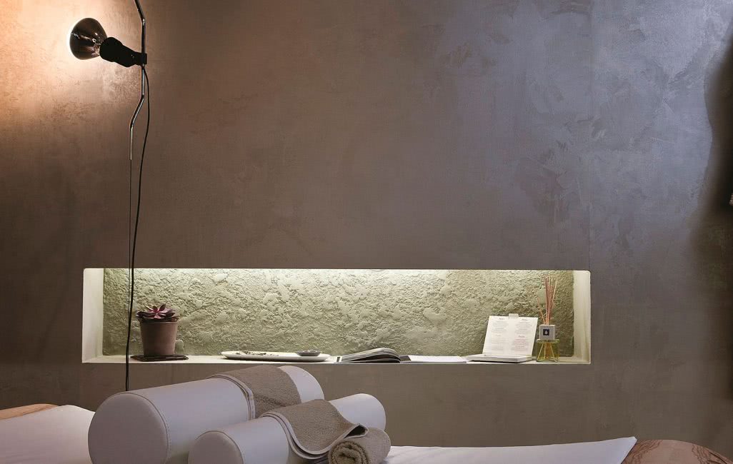 Венецианская декоративная штукатурка экологична и нетоксична и поэтому является практически универсальным вариантом для спальни. Благодаря широкой цветовой палитре, такое оформление позволит придать комнате воздушности, индивидуальности и шика.