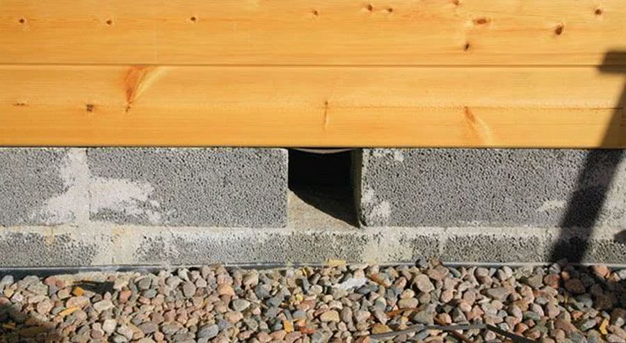 - С открытыми продухами. Через них будет выводиться влага, выпадающая в виде конденсата в отапливаемых излишне утепленных помещениях. Напрямую сообщающийся с грунтом пол в них всегда будет холодным, значит, в отопительный сезон образование “росы” усилится. Впрочем, если вложить средства в утепление пола, этого можно избежать.