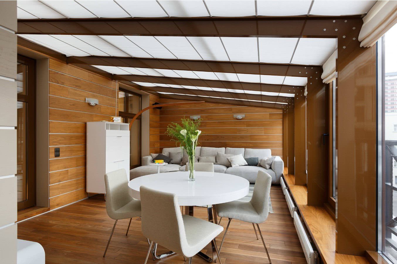 Универсальный тип конструкции удобен, чтобы оборудовать зону отдыха. Летом окна открывают и складывают в короб. Из мебели подойдут кресло, софа, подвесной диван. На подоконник устанавливают цветы.