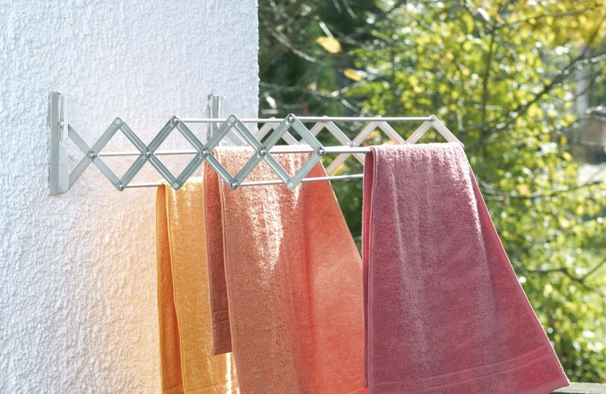 - телескопические устройства отличаются конструкцией на основе опорных балок, представленных несколькими выдвигающимися секциями. Сложенная бельевая сушка может использоваться в качестве традиционного полотенцедержателя. Такие системы прекрасно подходят для установки практически в любом месте и имеют большое количество неоспоримых преимуществ, включая доступность и простоту самостоятельного монтажа, современный внешний вид, легкое и быстрое регулирование на необходимой ширине. К основным недостаткам телескопических систем относятся низкие показатели грузоподъемности.