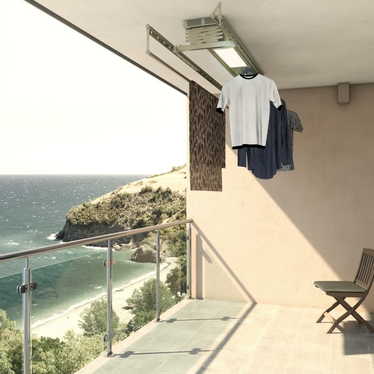 Более современная сушилка, подразумевает скрытое хранение, пока не используется. Подобные модели больше являются настенными, чем потолочными. Самым вместительный и практичный вариант – рулонная сушилка, представляющая несколько веревок, при необходимости прокатываемых до противоположной стены.