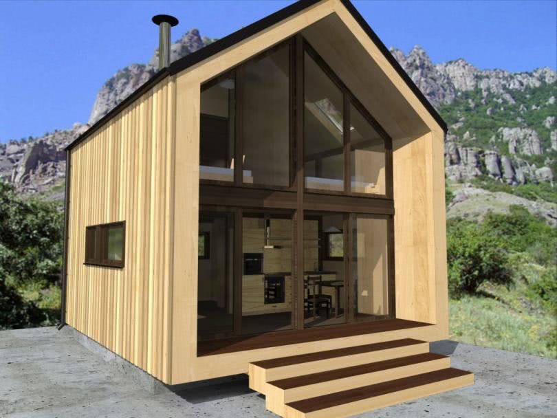 Стены каркасного дома подобного типа служат щитовым ограждением. Они выполнены из ОСП (ориентированно-стружечных плит). Преимущества использования тематических щитов очевидны:
