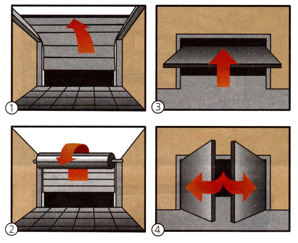 Во время подъема пластина перемещается с помощью пружин к потолку, благодаря чему на боковых стенках остается свободное место, которое можно использовать для полок с аксессуарами для временного ремонта автомобилей или поделок. В центре ворот этого типа есть место для ключа от замка, который активирует систему запирания — обычно одно- или двухточечную.