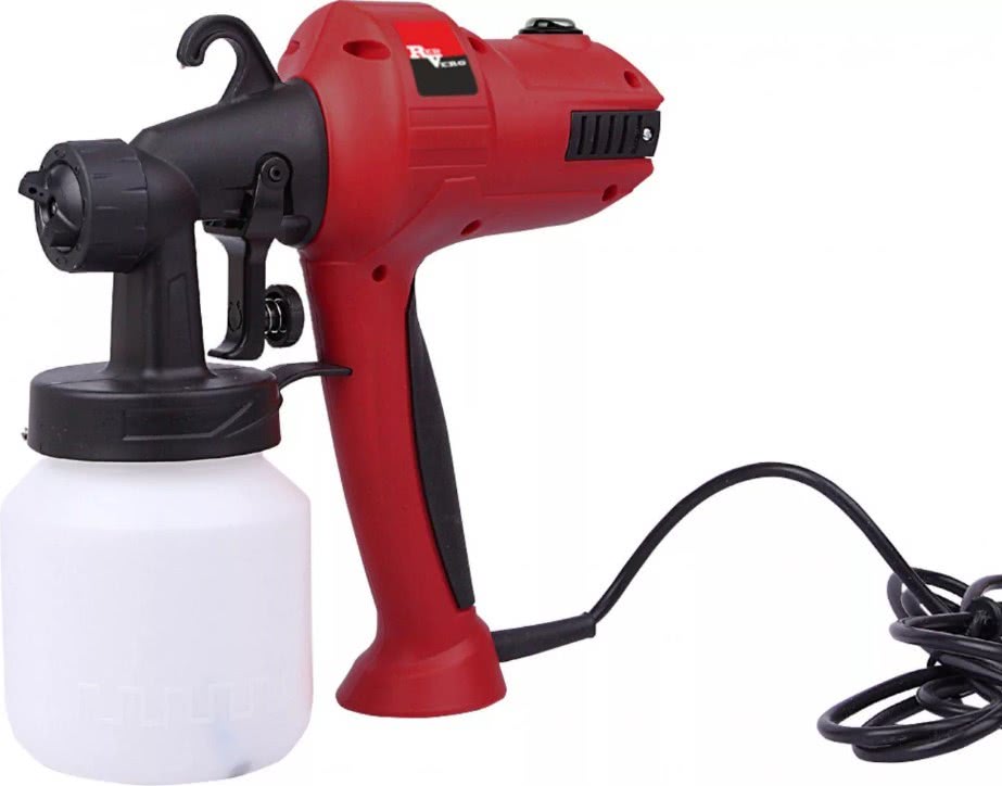 Электрический пистолет со встроенным мотором. Предназначен для работы с жидкостями, плотность которых выше 60 DIN. Густоту можно определить с помощью специального стакана, имеющегося в комплекте. Резервуар нижний, его объем равен 0.8 литра. А также в комплекте имеются два распылительных сопла размером – 1.8 и 2.6 миллиметра. Размер струи и сила напора могут регулироваться.