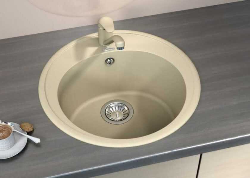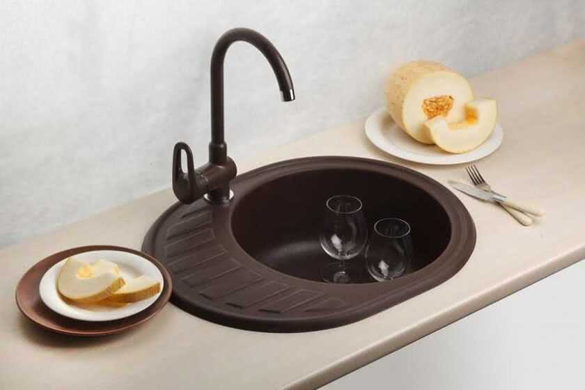 Круглая раковина для кухни не занимает много места. Ее проще, чем квадратную, очищать от загрязнений