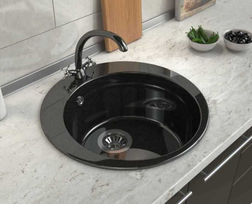 Мойка черная для кухни выглядит оригинально, изысканно и дорого. Темный оттенок является универсальным, поэтому его можно удачно сочетать с разными стилями интерьеров — как современными, так и классическими. На поверхности черной раковины меньше заметны царапины и другие механические повреждения, однако более видны отпечатки пальцев и следы брызг.