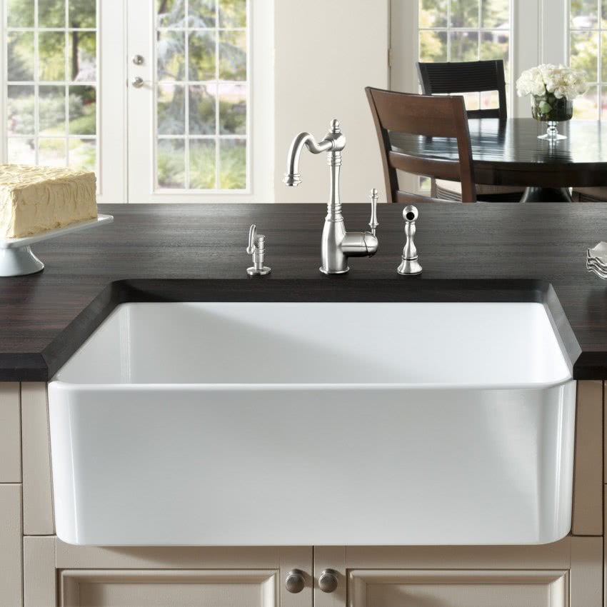 На керамической раковине можно даже нарезать овощи, ее поверхность не будет поцарапана. Кроме того, ее легко чистить, она очень устойчива к температуре и обесцвечиванию. К сожалению, этот продукт стоит гораздо дороже, чем модель из нержавеющей стали.