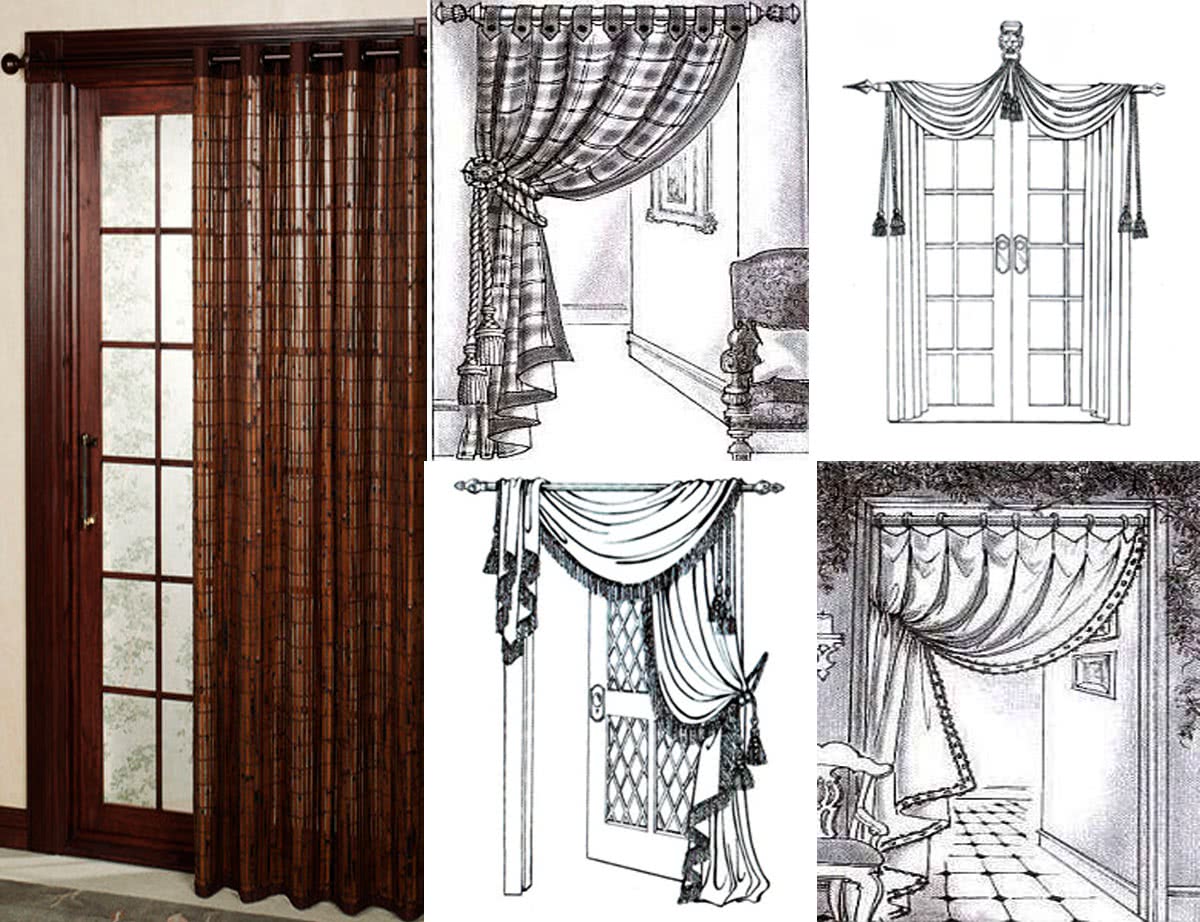 - декоративную функцию- в этом случае шторы просто украшают дверной проем и в зависимости от стилистики могут сделать ваш интерьер более парадным или наоборот более домашним и уютным.