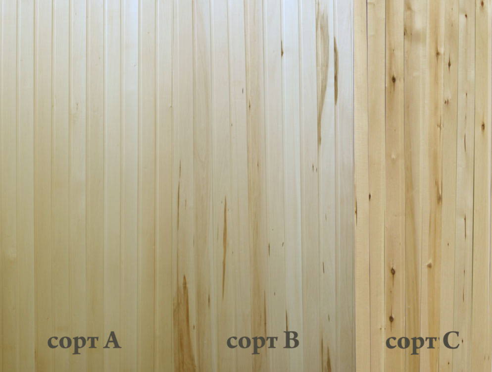 Сорт «A» — в панелях такого класса разрешается наличие двух-трех живых сучков на погонный метр и незначительные сколы вокруг них. На фронтальной стороне могут присутствовать микротрещины, как правило, зашпаклеванные, но это зависит от ответственности производителя. Могут быть и торцевые трещины, но не на всю ширину профиля. Материал, произведенный из сердцевинного сырья, не должен превышать 20 % от общего количества приобретенного товара. Профиль хвойных пород не исключает засмоленность, но не выше 10 % от всех досок в упаковке.