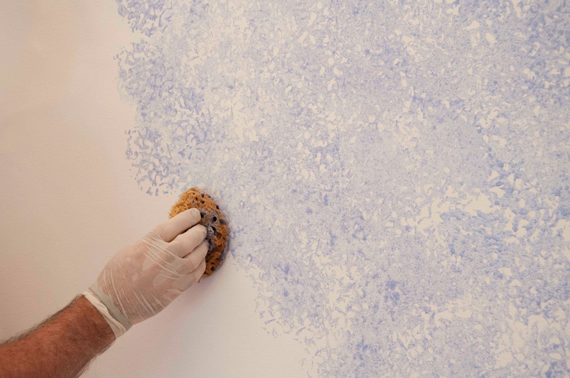 Этот метод потребует много времени, так как нанесение слоя будет происходить губкой, которой покрыть всю стену нельзя быстро. Завершающий цвет наноситься губкой, пропитанной краской, она оставляет на стене фактурные отпечатки, служащие узором.