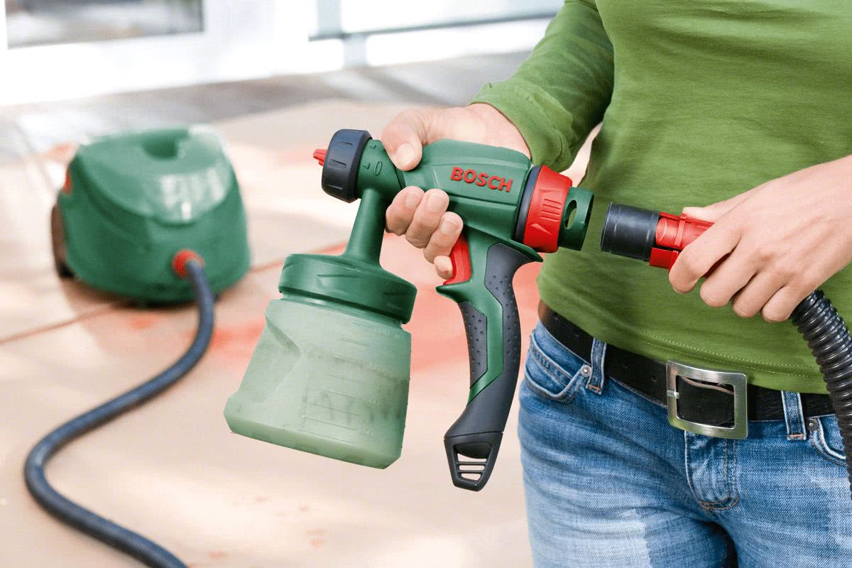 Лучшим инструментом для многоразовой покраски полотен считается краскопульт.
