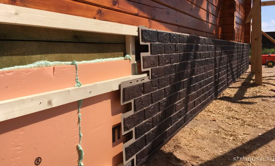Для начала по периметру здания у цоколя монтируется обрешетка, в которую впоследствии закладывается слой утеплителя (не забывая оставлять продухи для правильной вентиляции), затем монтируется чистовая облицовка в виде цокольных панелей, шифера или листов фанеры, таким образом, решается вопрос, чем закрыть свайный фундамент снаружи. Такая защитная оболочка воспрепятствует промерзанию пола и коммуникаций, а дополнительный монтаж отмостки вокруг дома, сохранит от промерзания грунт под домом.