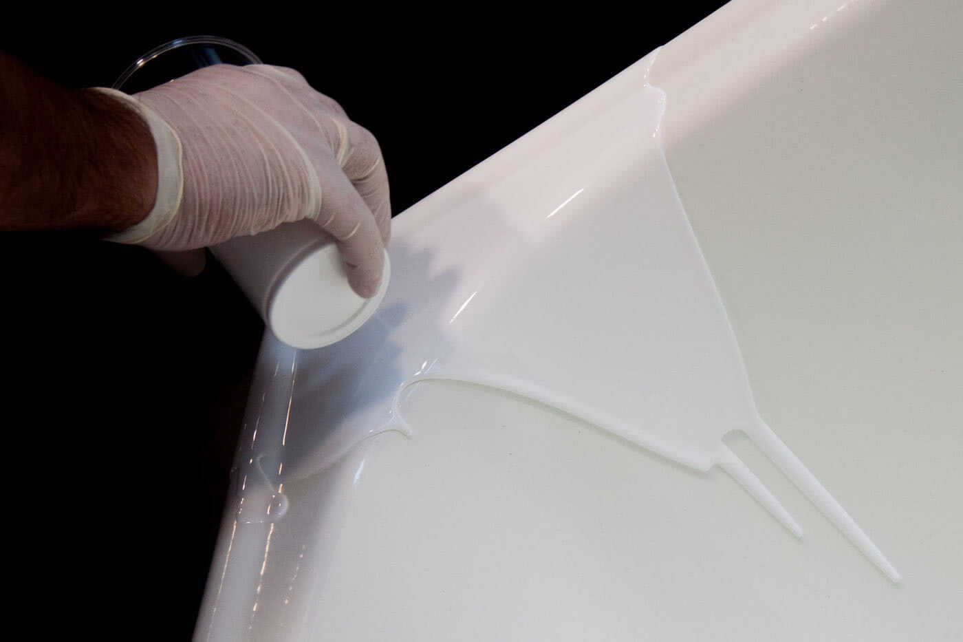 - Акрил – густая и вязкая субстанция, благодаря чему она ложится на поверхность густым, ровным слоем, скрывая все дефекты и неровности ванны.