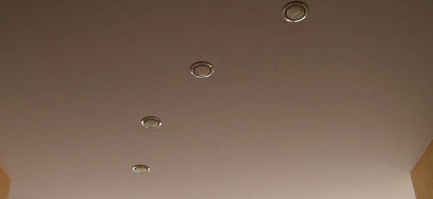 Все работы следует выполнять с особой осторожностью, ведь натяжной потолок – достаточно нежное покрытие. Процесс вставки разных по форме заглушек ничем не отличается и выполняется исключительно руками
