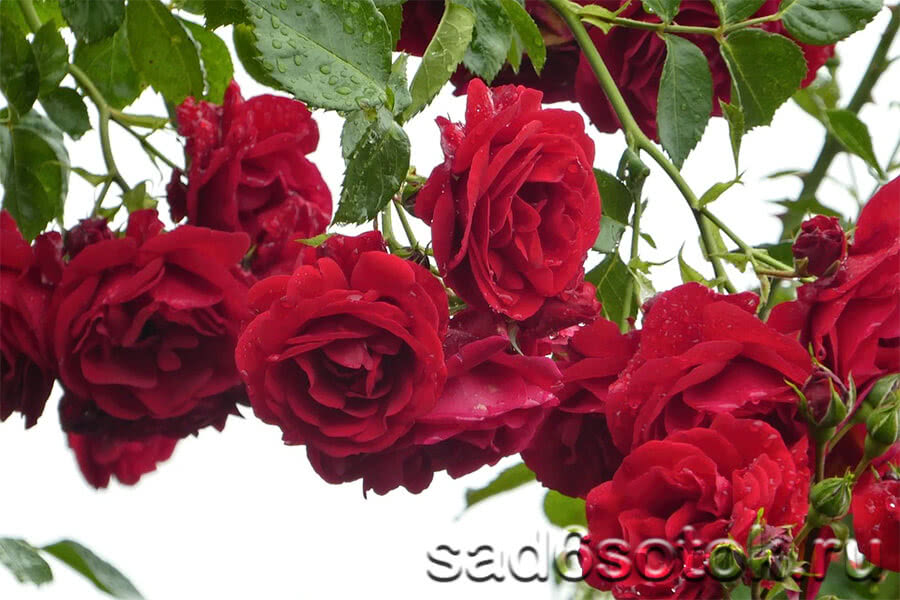 Плетистая роза хорошо переживает период засухи. Цветение продолжается с конца весны до поздней осени. Как правило, участок, который украшают плетистой розой, преображается до неузнаваемости.