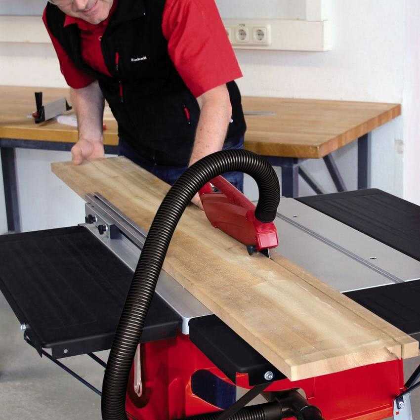 Стремительно набирает популярность еще и такая функция, как подключение пылесоса. В процессе пиления дерева, с которым чаще всего и работает циркулярная пила, образовывается огромное количество опилок, которые не только засоряют мастерскую, но могут попадать и в дыхательные пути или глаза, представляя серьезную опасность для здоровья. Присутствие описанной функции позволяет пылесосу втягивать в себя все мелкие частицы уже в момент их образования, потому рабочее место обычно даже не требует особой уборки.