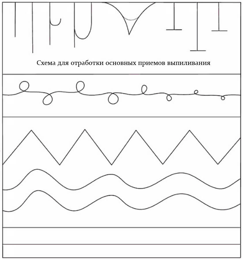 В основе самых замысловатых узоров всегда лежит ряд базовых фигур и элементов, отработав которые вы будете подготовлены к выполнению сложных проектов. Делать это желательно на тонкой фанере толщиной до 3 мм.
