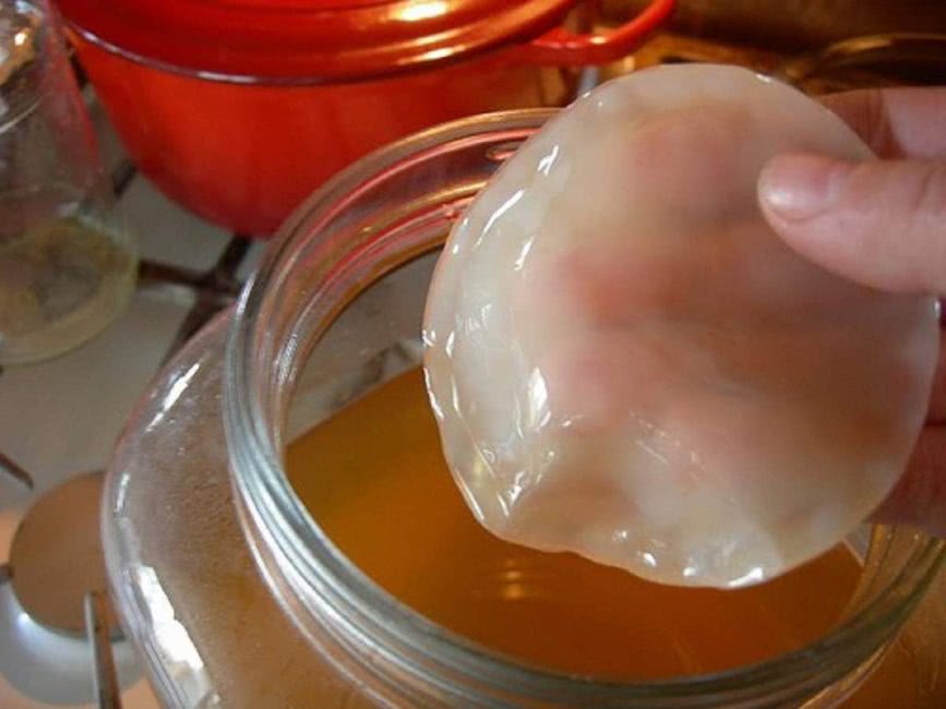 В старом грибе этот слой появляется заново в течение 5-10 дней. Верхнюю корочку необходимо удалять по мере её огрубения. Раз в два месяца гриб следует промывать особенно тщательно, полностью меняя жидкость в банке, стерилизуя её.