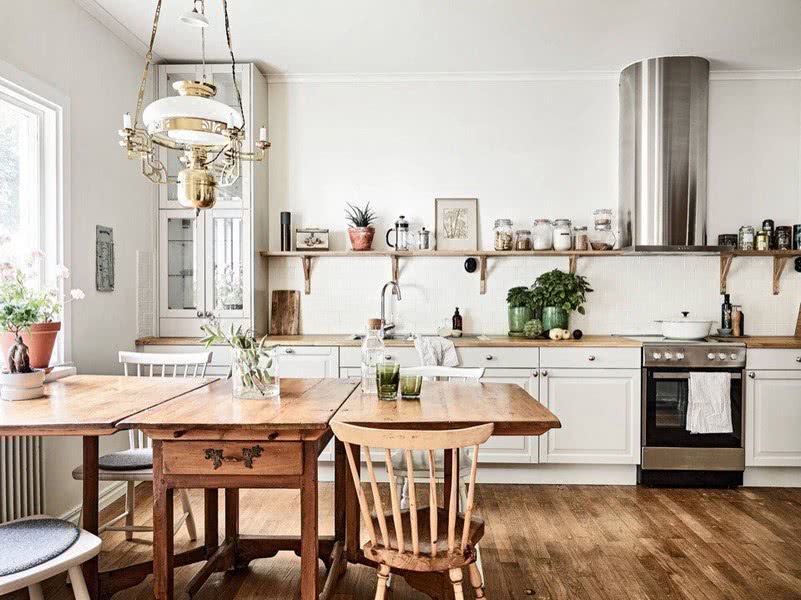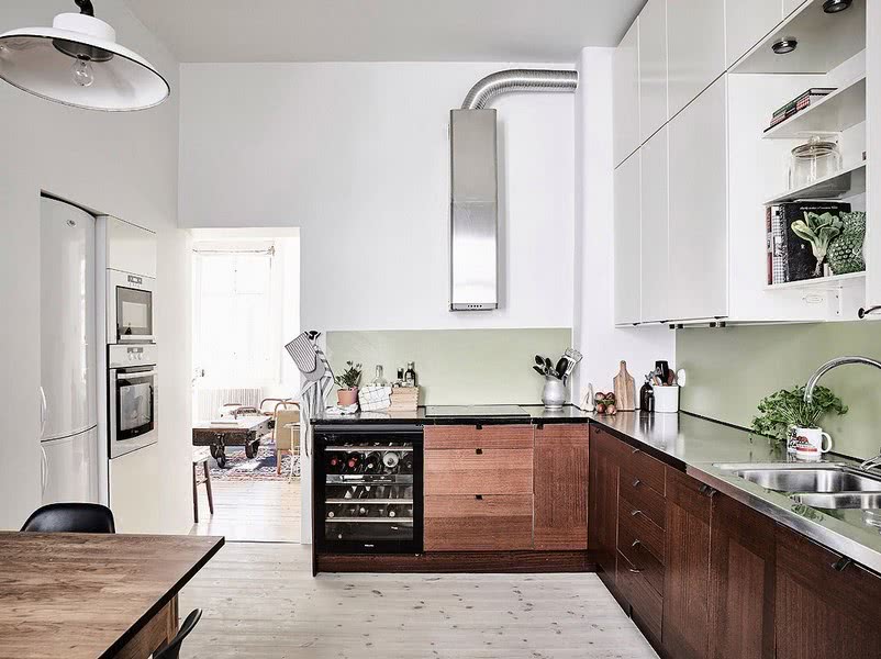 Если три предыдущих способа скрытого монтажа воздуховода не подходят, то можно просто задекорировать вентиляционную трубу. Проще всего ее покрасить в цвет, сочетающийся с интерьером кухни. Но это не единственный способ. Задекорировать трубу можно в оригинальном стиле. Тогда она станет отдельным элементом интерьера помещения.