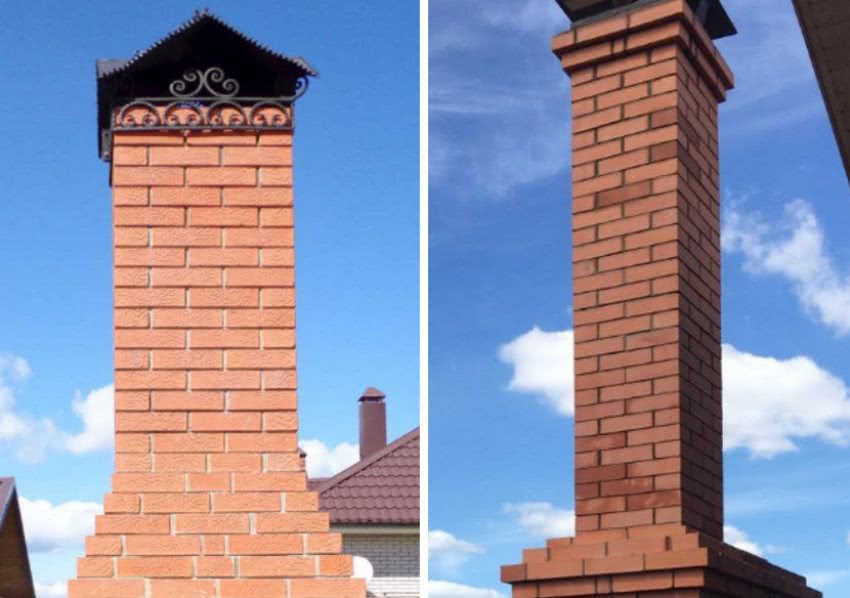 На задней стенке дымохода обычно выкладывается изгиб небольших размеров, то есть зуб. Такой элемент позволяет заметно улучшить тягу. Над дымоходом необходимо выполнить крепление козырька, защищающего трубу от попадания в нее осадков