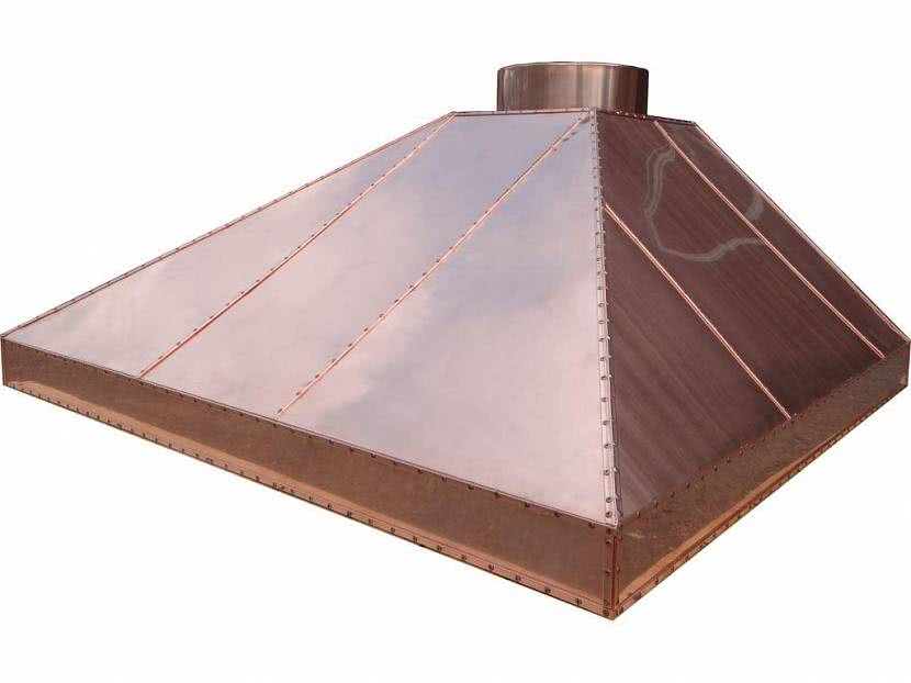Сам дымовой колпак представляет куполообразную конструкцию диаметром около 1,5 м округлой, конусовидной, прямоугольной, квадратной форм. Лучший материал для ее изготовления – листовая сталь толщиной от 2 мм. Некоторые используют медь. Отверстие в центре купола соединяется краями с трубой, высота которой составляет от 2 до 3 метров.