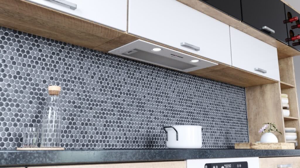 В случае встраиваемой вытяжки, устанавливаемой под шкафом, огромную роль играет выбор фильтра, улавливающего грязь и летучие частицы жира из воздуха. Войлочные фильтры являются стандартными для этой модели, более экономичными являются алюминиевые, которые можно много раз чистить и использовать долгое время. Также стоит позаботиться о том, чтобы в вытяжке был установлен дополнительный угольный фильтр для защиты от неприятных запахов.