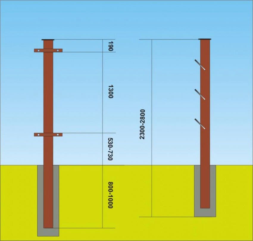 Нижнюю часть столбов на высоту 1,3 м два или три раза покрывают битумной мастикой. Покрытие должно быть выше уровня земли на 10 см.