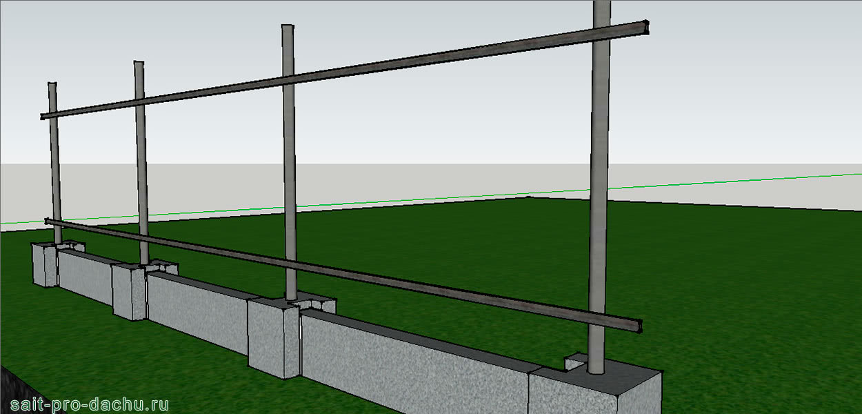 В качестве опорных столбов может использоваться любой материал, но самым простым, надёжным и доступным является металлическая труба. Её необходимые параметры находятся в прямой зависимости от ожидаемой нагрузки.